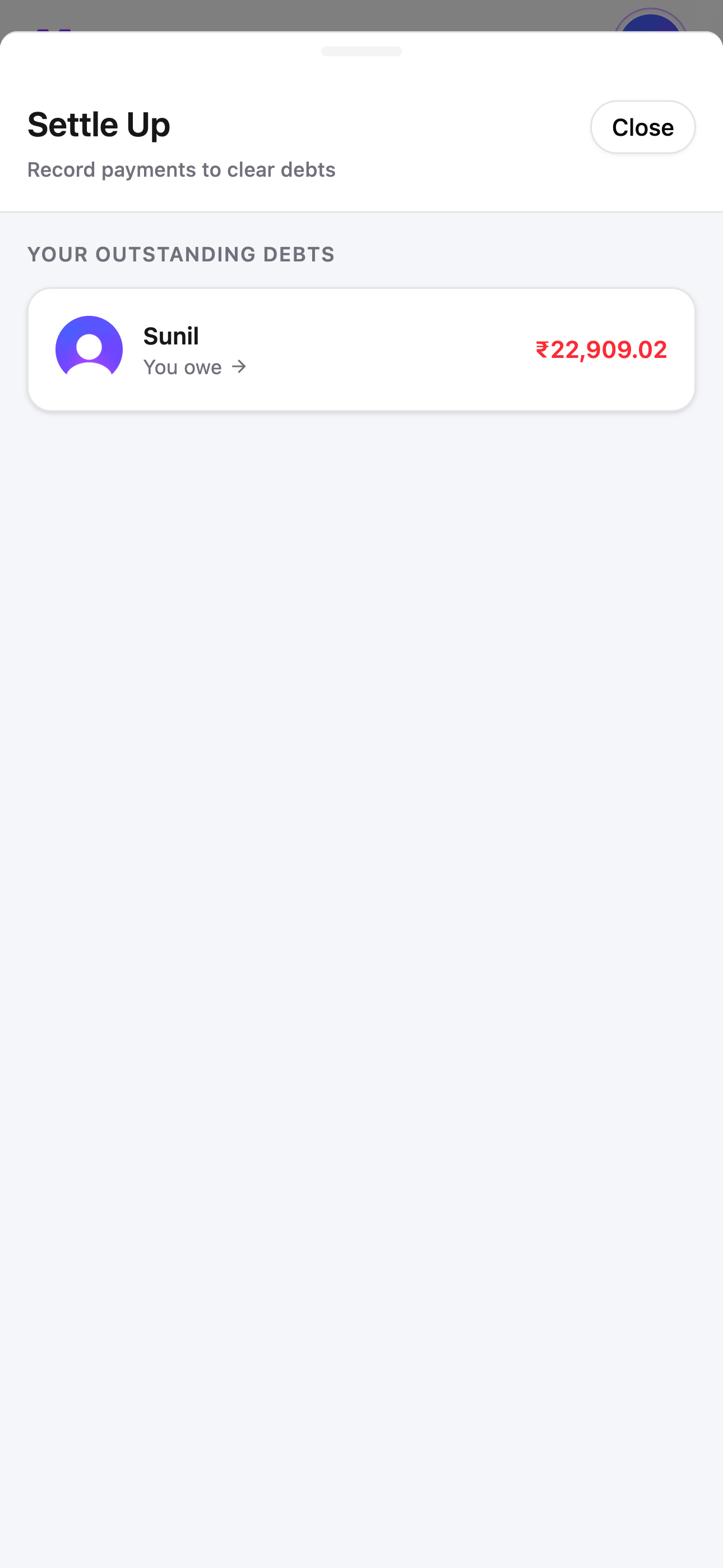 No mental math about who owes whom. Pick a debt, confirm the amount, done. Everyone stays square.